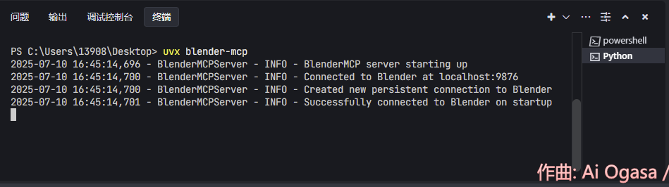 请一定要安装uv。这是激活Blender-MCP的方式。
