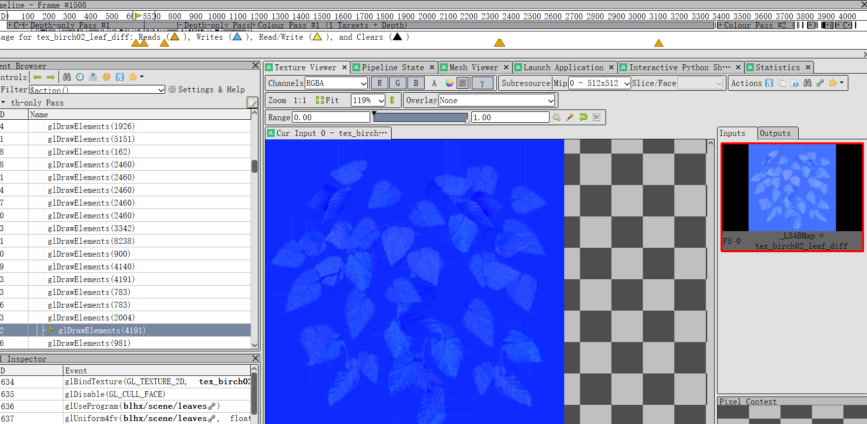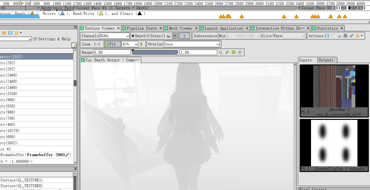 - 是一些小物件的贴图(比如花盆)在depthpass的时候就已经存进去了,怀疑这是一个小Trick,减少了对于ColorPass部分的带宽压力?