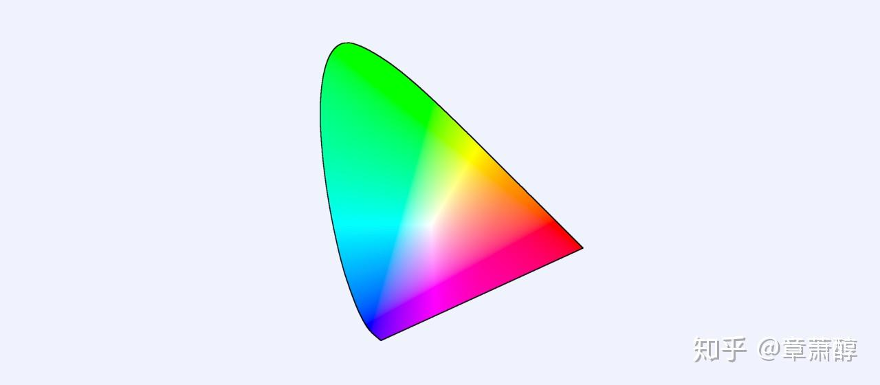 - CIE 色度图(如 CIE 1931 xy 色度图,最常见的显示器色域可视化,除了1931还有很多版本,比如说1960UCS系列、1976系列、CIECAM系列)的边界是根据人眼对颜色的实际感知和混合结果、而不是简单的几何规则推算出来的。