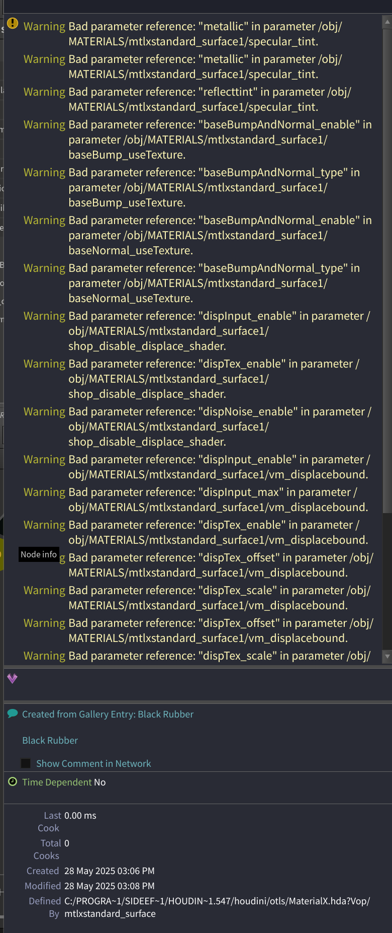 这里其实是参数引用错误,说明从principled shader转换到mtlxstandard_surface后,参数名称不匹配,换句话说,也可以认为是Channels出现了不匹配的情况。
