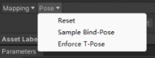 Pose: 主要用于调整当前骨骼的姿势,便于正确映射和校准人形骨骼。 分为Reset、Sample pose和Enforce T-pose。